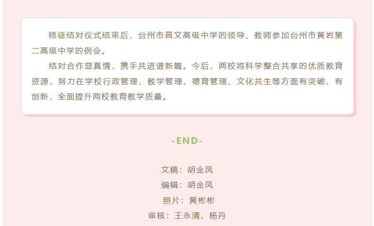 我校与省二级重点中学--黄岩第二高级中学进行师徒结对